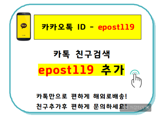 1. 카톡ID(epost119)로 톡을 주시면 고객님의 전용주소 및 연락처를 드립니다.